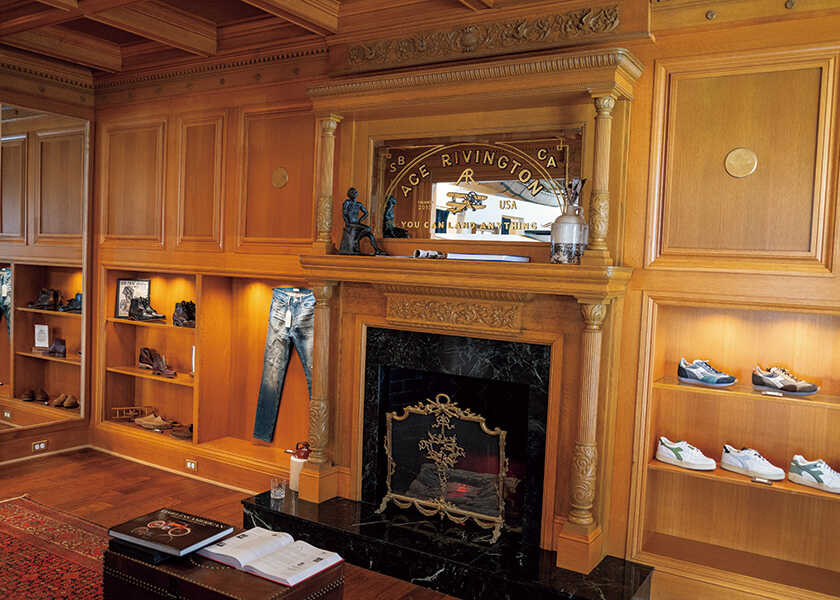 サンタバーバラ発のプレミアムデニムブランドの旗艦店。内観は外観に反してクラシックで英国っぽいムードが漂う。