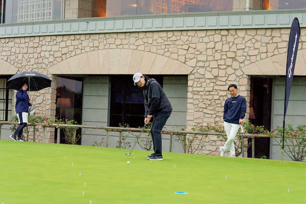 ラウンド終了後は、“Qi35”シリーズをはじめとする、〈テーラーメイド〉の最新クラブが打ち放題の試打会を開催。また人気の“スパイダー”シリーズのパターを使ったパターゲームも行われ、優勝チームにはなんと〈テーラーメイド〉のクラブが贈られた。