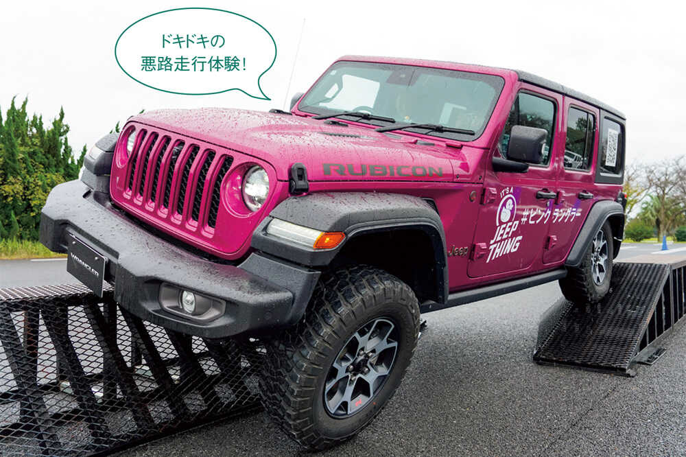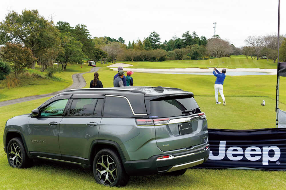 イベントの当日は、クラブハウスの入り口とコースサイドに〈ジープ〉の誇るオフローダー “ラングラー・ルビコン”を展示。さらにコース内の17番ホールにも〈ジープ〉の人気SUV “コマンダー”が展示され、コンペ参加者の撮影スポットとして賑わっていた。またラウンド終了には、特別に設置された擬似オフロードコースで、悪路走行の体験試乗会も行われた。