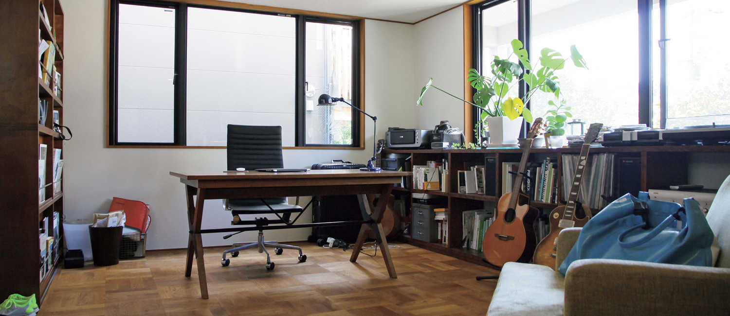 家々が立ち並ぶ人気の住宅地ながら、外部からの視線をコントロールする設計の工夫でプライバシーを確保した石橋邸。柔らかな光が満ちた部屋にこだわりのグッズやお気に入りのコレクションを満載している。開放感とこもり感のバランス抜群の2階LDKではグ…