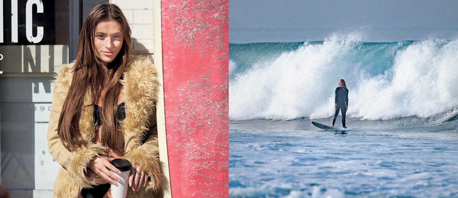 エッジの効いたビーチスタイルが気分! アセナ・ウェンゼルサンディエゴ育ちのアセナは、週末になると家族でビーチに行くのが日課だったとか。やがて、海や自然をモチーフにアートを制作。今はヴェニスビーチで波乗りに明け暮れている。
