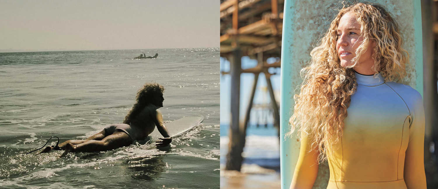 輝くカーリーヘアとレトロなボードがぴったりのダニエル。ヴィンテージ好きが高じてユニークな店“@theladydandelion”を開くとたちまち人気に。そんな個性派サーファーの半日を追ってみた。