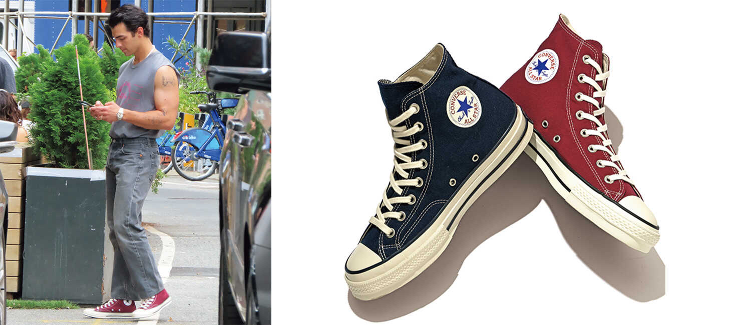 カラバリの豊富さもオールスターの魅力。もちろんセレブたちもいろんなカラーで着こなしを楽しんでいる。で、そのこなし方は、コーデ全体の色数を減らし、カラフルなオールスターを装いのアクセントするのがセレブの王道の活用法。またコーデに馴染むよう、…