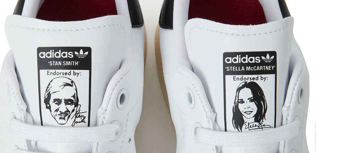 スタン・スミスじゃない女性の似顔絵が気になる!思わず2度見してしまうシュータンの似顔絵。よく見ると、片方に描かれているのは、えっ! 女性!? 実はこのシューズ、新しく登場した〈アディダス〉と〈ステラ マッカートニー〉のコラボシューズ。つまりこの似顔絵の女性の正体は、ステラ本人ってわけ…