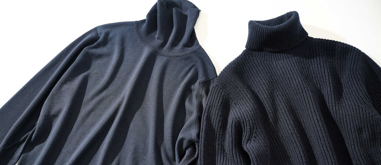 普段は自分好みのアメカジだったり、ちょっと骨太なファッションが定番だったとしても、デートシーンとなると話は別。できるだけ相手から好印象なスタイルで、颯爽と登場したいでしょ? であれば、この冬はネイビーのタートルニットを是非取り入れて!