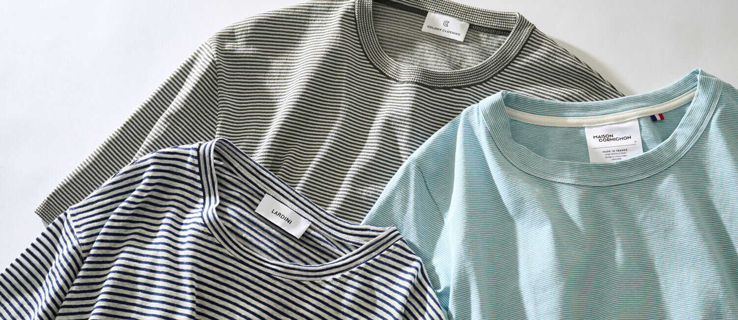 きっといい大人のみなさんはボーダーTと聞くと、1970年代サーファーか船乗りをイメージする? ところがこの夏店頭に揃うのは、サーフなマルチボーダーでも、水兵みたいな太ボーダーでもなく、フレンチマリンの雰囲気を感じる爽やかな細~いボーダーT…
