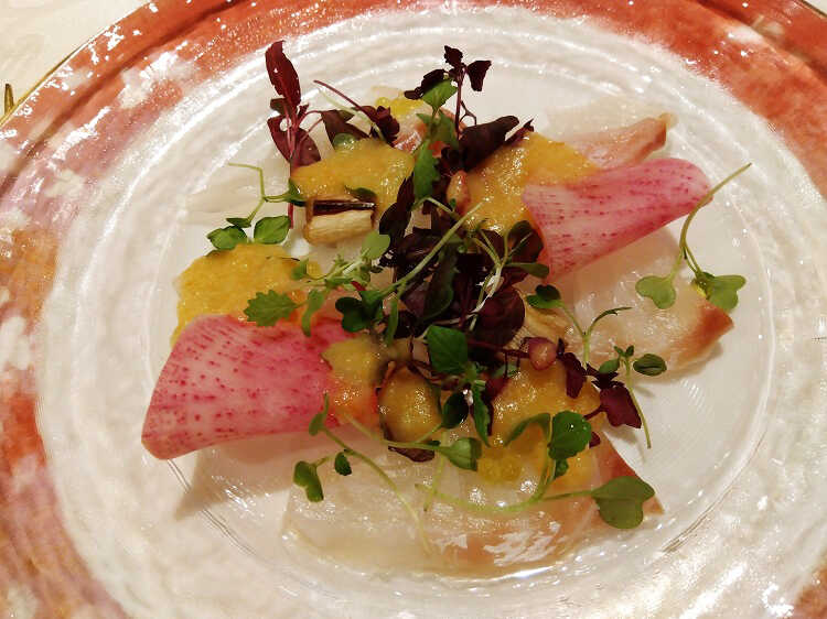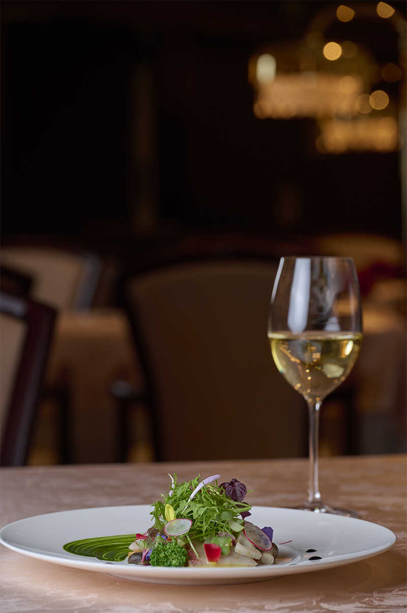 ディナーはメインダイニングの『フォーシーズン・ダイニングルーム』で、フレンチのフルコースを味わった。ゲストがさまざまな料理を楽しめるように、趣向を凝らしたメニューが並び、旅の夜をさらに特別なものにしてくれる。