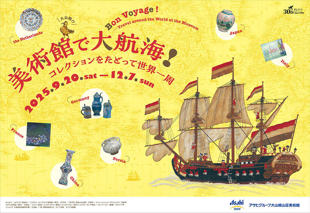 『アサヒグループ大山崎山荘美術館』は、2026年に開館30周年を迎える。節目を前にした今回の企画展『美術館で大航海! ~コレクションをたどって世界一周~』では、日本から西欧、アメリカまで、時代も地域も超えた100点以上の作品を一挙公開。ポール・シニャック『ヴェネツィア』(1908年)をはじめ、初出品作も登場し、まさに“コレクションの世界一周”を体験できる内容となっている。
