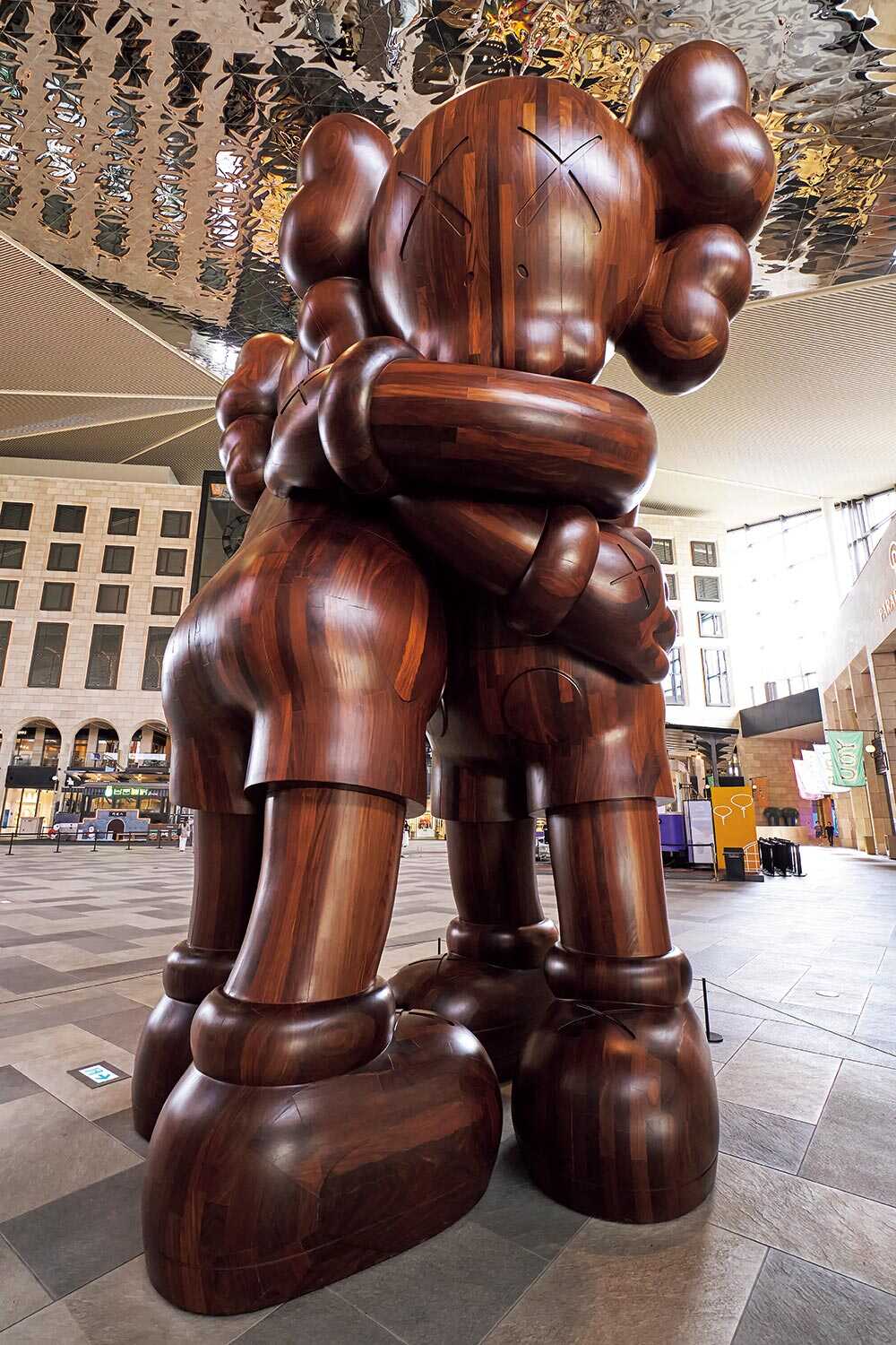 プラザの広場で出会える巨大なアートは圧巻! TOGETHER/カウズ