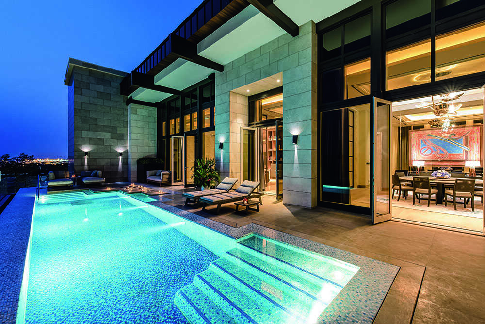 別棟に位置するプライベートプールをしつらえたプールヴィラ。プールに加えてウェットサウナや〈テクノジム〉のマシーンも装備。究極のプライベート感が味わえる