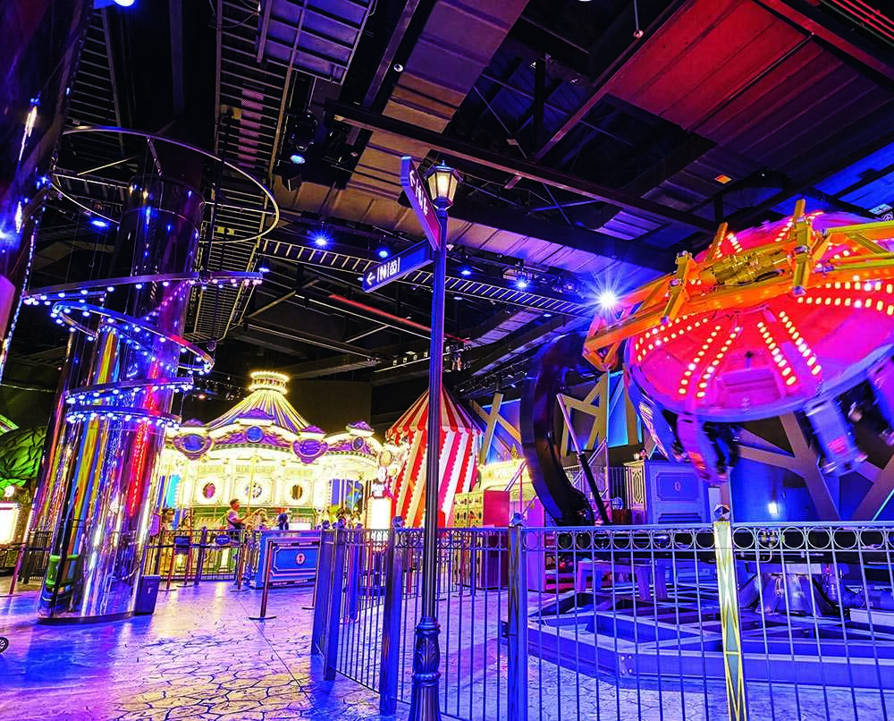 "夜の遊園地" をコンセプトにした屋内型テーマパーク。空間デザインを手掛けたのは世界的なデジタルアート集団モーメント・ファクトリー。 電飾がキラキラと輝き、ノスタルジックな移動遊園地を思わせる。グリーティングショーからドリーミンなカルーセル、縦横ナナメと回転するメガミックスなど、ロマンチックからスリリングまでアトラクションは多彩。チュロスやソフトクリームを片手に、 子供に返ってはしゃぎたい気分に!