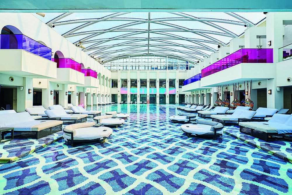 ありとあらゆる水浴施設が大集合し、韓国のチムジルバンがスタイリッシュに進化した巨大なスパ。吹き抜けのメインプールは、イタリアのサン・マルコ広場がモチーフ。浅場に置いたサンベッドやクリアガラスのプールなど気になるアイテムが目白押し。韓国式サウナやウォータースライダーなど、一日いても飽きない施設群を堪能したい。