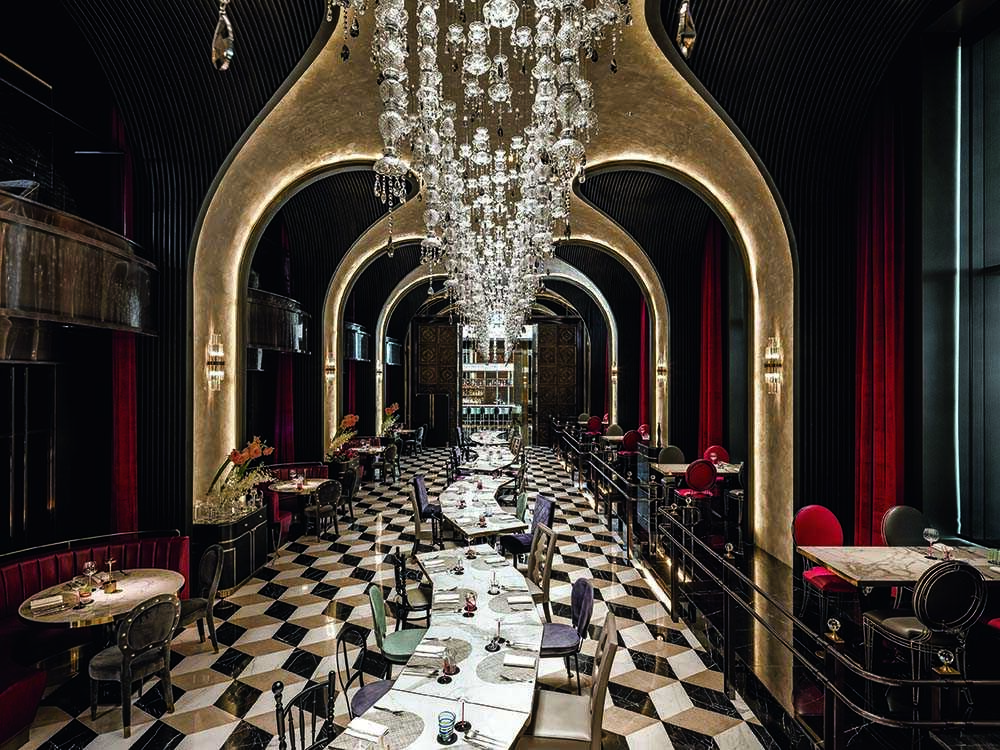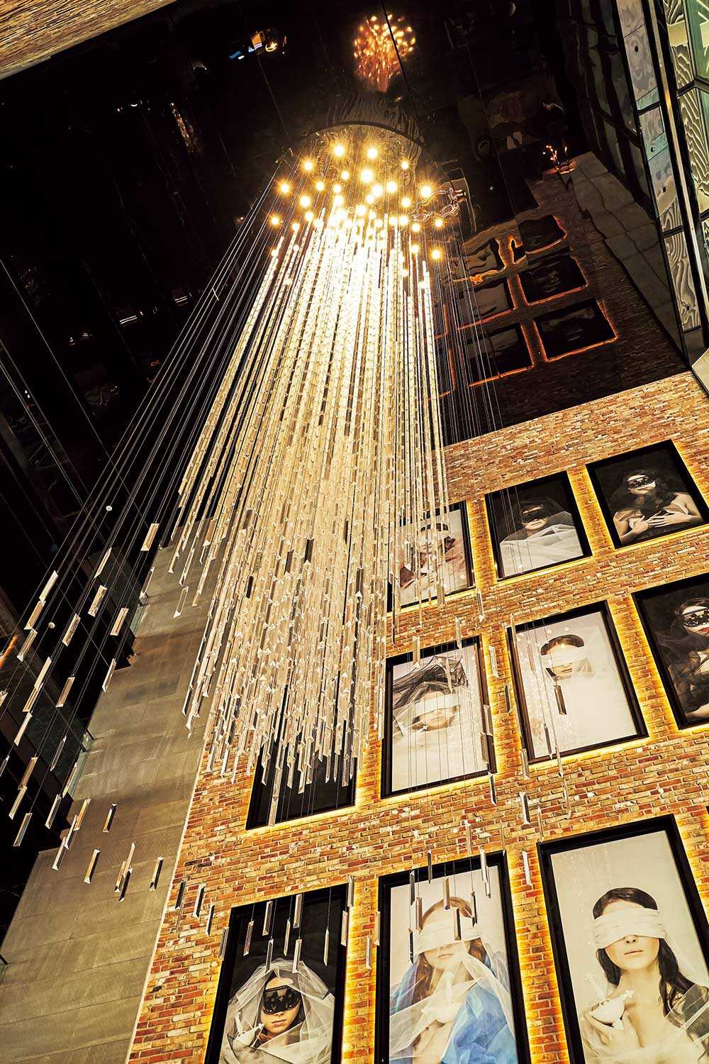 シャンデリア照明とほのかな照度で芸術的で創意的な雰囲気を演出