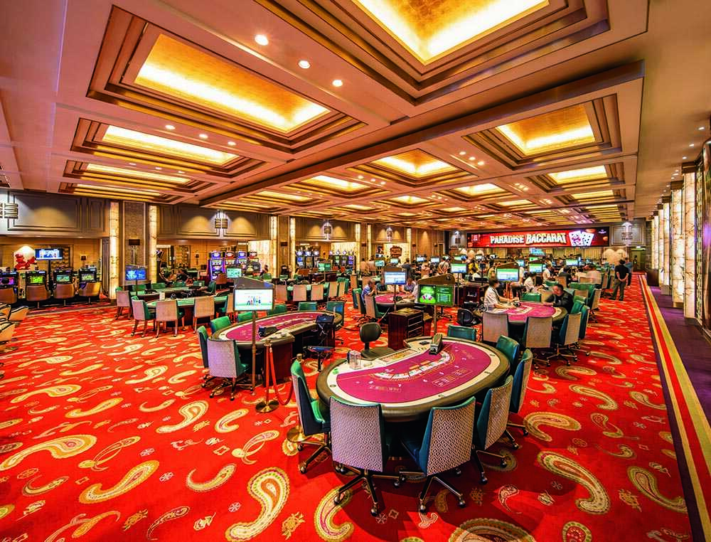 真っ赤な凱旋門を抜けてカジノへ。外国人専用なので、パスポートを忘れずに。入場は19歳以上
