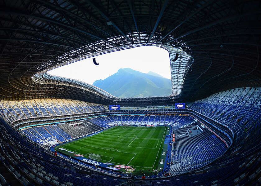 “エスタディオBBVA”の名称で、地元のCFモンテレイのホーム。2015年完成のため、設備は近代的。額縁のような山の景色が壮観!