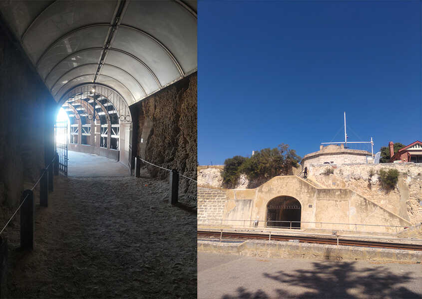 その『ラウンドハウス』の下にあるのが、『ホエラーズトンネル』だ。かつてフリーマントルが捕鯨港として栄えた時代、捕獲した鯨を港から街へ運ぶために掘られた通路だそう。トンネルは鯨が通れるほどの大きさで、当時の雰囲気を今に伝えている。