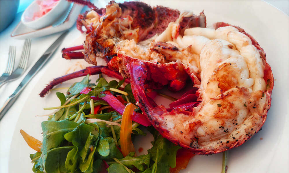 そして、そのロブスターはすぐさま船上のシェフの手に渡り、絶品の料理へと昇華される。透き通る身をそのまま味わう刺身、香ばしく焼き上げたグリル──さらにエビやタコなど、地元で獲れた新鮮な魚介を使った全8品のコースが続く。どの皿にも地元産・高品質・サステナブル認証食材を使用しているため、素材そのものの力強さが楽しめる。