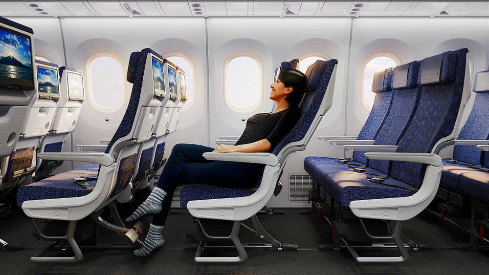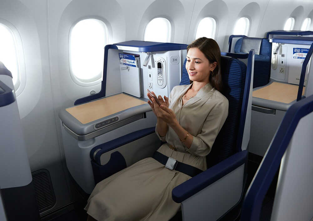 使用機体はボーイング787-9。ビジネスクラス40席、プレミアムエコノミー14席、エコノミークラス192席の計246席仕様で、快適性と機能性を兼ね備えた機内空間が広がる。エコノミークラスを含むすべての座席にはUSBポートとPC電源が備えられており、長時間のフライトでもデバイスを充電しながら過ごせるのが嬉しい。さらに2024年4月からは全クラスで機内インターネットが無料化され、エコノミークラスでもメッセージの送受信などが可能となった。