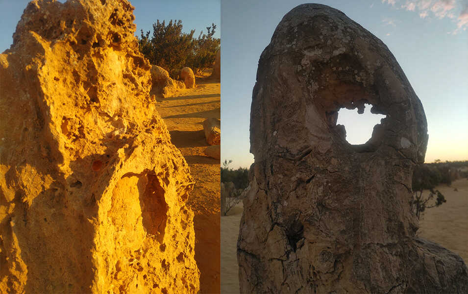 ピナクルズとは、砂漠の中に無数に林立する石灰岩の柱群のこと。その起源は太古の海にさかのぼるという。かつてこの地が海底だった頃、貝殻や砂が堆積し、長い年月をかけて石灰岩層を形成。それが風や雨によって侵食され、現在のような独特の形状へと変化したそうだ。