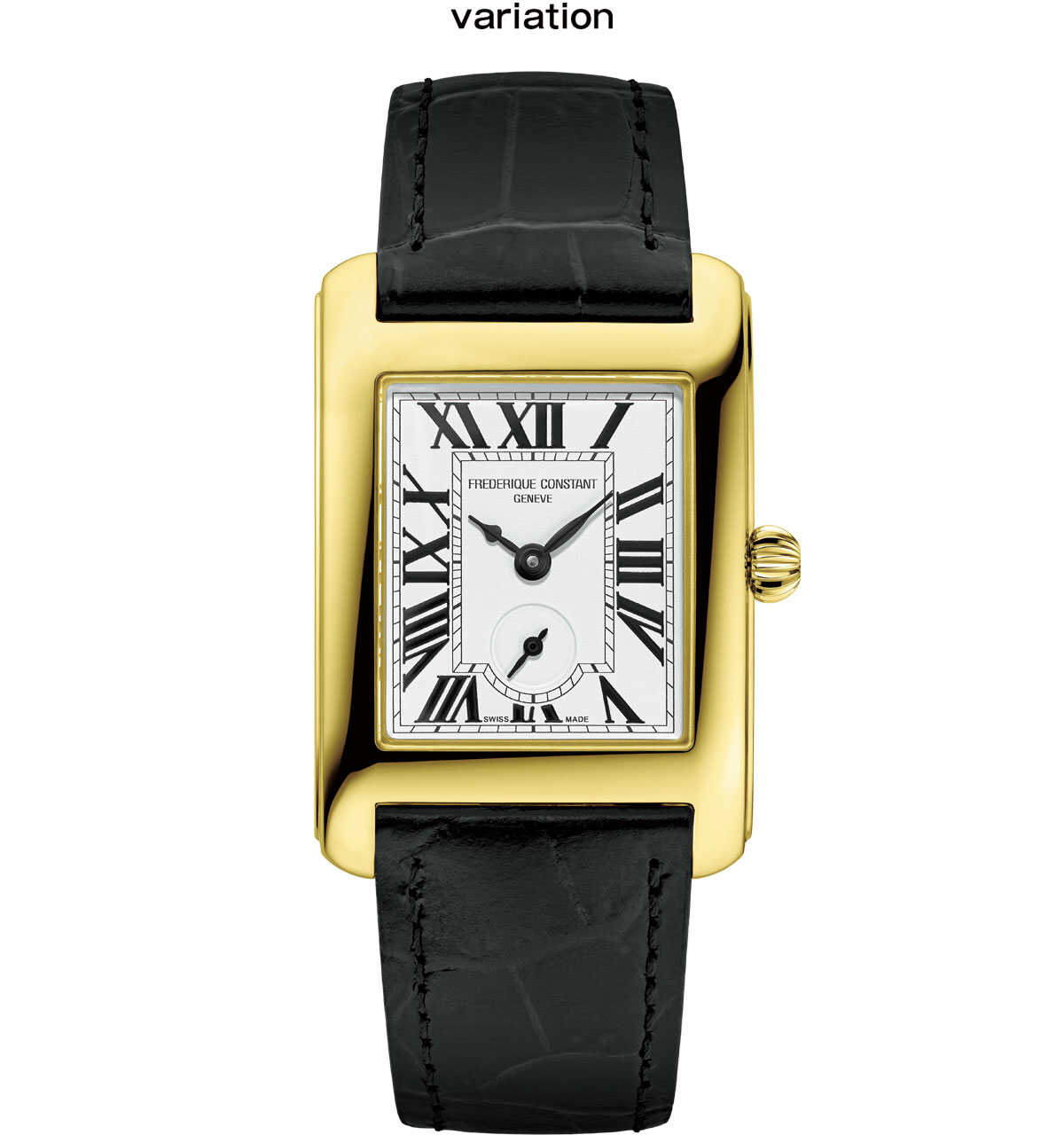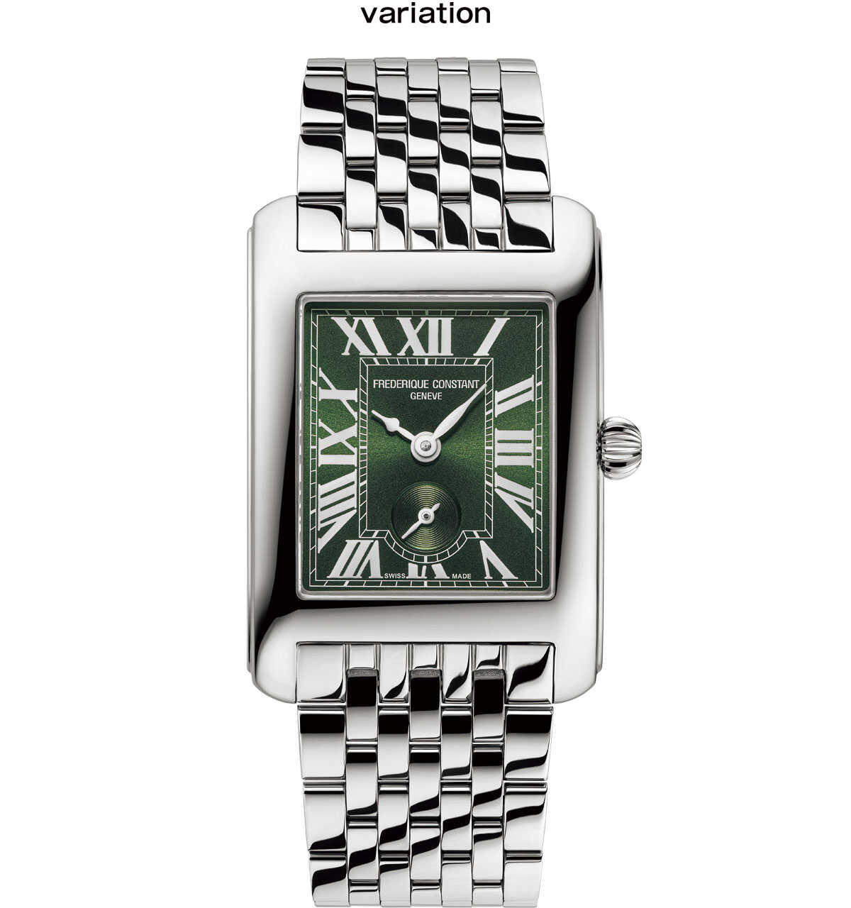 円周と放射線状のラインが特徴的な“セクターダイヤル”にスモールセコンドを配した。ダイヤルカラーやケース、ストラップなどのバリエも豊富。写真1枚め:ケースサイズ27.6×25.2㎜、クォーツ、SSケース、牛革ストラップ、3気圧防水。18万7000円(フレデリック・コンスタント/フレデリック・コンスタント相談室) 写真2枚め:ケースサイズ27.6×25.2㎜、クォーツ、SS×YGプレートケース、牛革ストラップ、3気圧防水。20万3500円(フレデリック・コンスタント/フレデリック・コンスタント相談室) 写真3枚め:ケースサイズ27.6×25.2㎜、クォーツ、SSケース&ブレス、3気圧防水。20万3500円(フレデリック・コンスタント/フレデリック・コンスタント相談室)