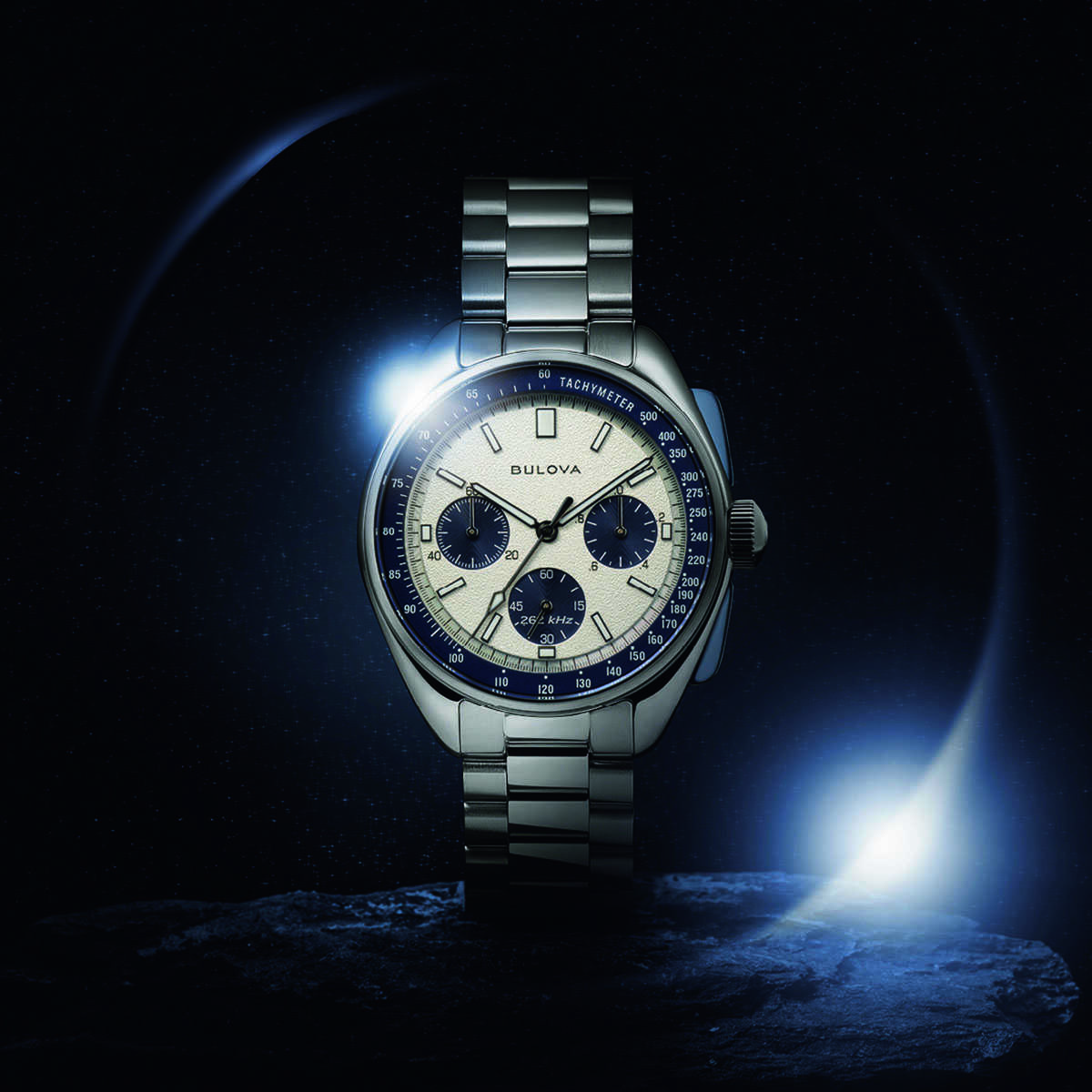 アポロ15号の船長とともに月に降り立った時計を復刻した“ルナ パイロット クロノグラフ”もマイケルは愛用。ケース径43.5㎜、クォーツ、SSケース&ブレス、5気圧防水。10万3400円(ブローバ/ブローバ相談室)