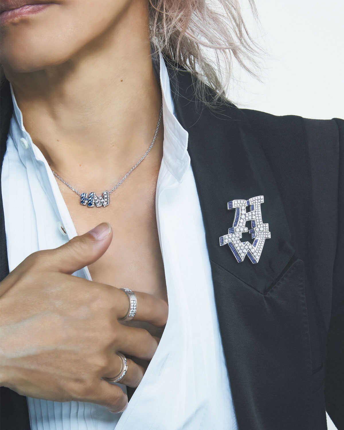 グラフィティ・ブローチ[PT×サファイア×ダイヤモンド]929万5000円、グラフィティ・ペンダント[PT×サファイア×ダイヤモンド]232万1000円、トラフィック・アクセント・バンドリング(ワイド)[PT×ダイヤモンド]152万9000円~、トラフィック・アクセント・バンドリング[PT×ダイヤモンド]68万2000円~(以上ハリー・ウィンストン/ハリー・ウィンストン クライアントインフォメーション)