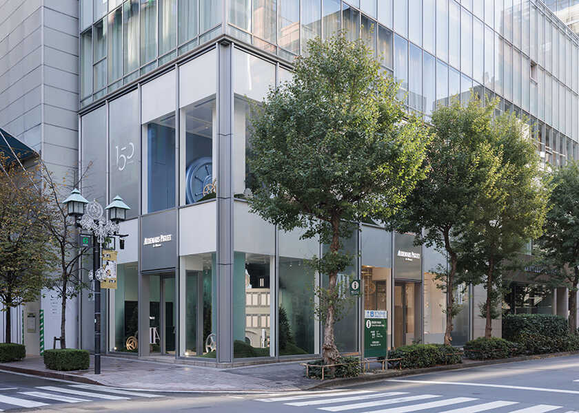 まずは現在開催中の「ハウス オブ ワンダーズ展」から。今回の特別展は“〈オーデマ ピゲ〉をより多くの人に知ってもらいたい”という思いのもと、1875年にスイスのル・ブラッシュで創業したブランドの伝統と革新を体感できる没入型展示が見どころ。銀座・並木通りに面した会場はご覧のとおり。建物の大きな窓は、1907年当時、職人のためにより広いスペースと優れた採光を求めて設立した新工房(現在も本社として使用)にならったもの。「ハウス オブ ワンダーズ」の名前からご想像できるとおり、会場はまさに〈オーデマ ピゲ〉を驚きの演出で紐解くと同時に、これまでの歩みが窺い知れる場所となっている。