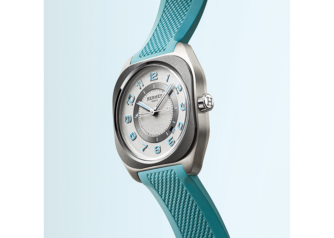 スポーティなエスプリを備え、巧妙なコントラストと調和を楽しめるコレクション。円形文字盤と角を落としたエッジのケースを組み合わせた複合的なフォルムや先進のチタン素材に、堅牢さと繊細さが同居する。ケース径39㎜、自動巻き、チタンケース、ラバーストラップ、10気圧防水。132万円(エルメス/エルメスジャポン)