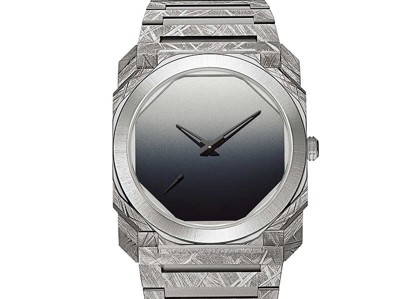 現代アーティスト、李禹煥(リー・ウファン)の詩情豊かなミニマリズムと融合。グレーからブラックへと移ろうミラーエフェクトのグラデーションダイアルや幾何学模様を浮かべるブレスレットに美が宿る。150本限定。ケース径40㎜、自動巻き、チタンケース&ブレス、3気圧防水。316万8000円(ブルガリ/ブルガリ・ジャパン)