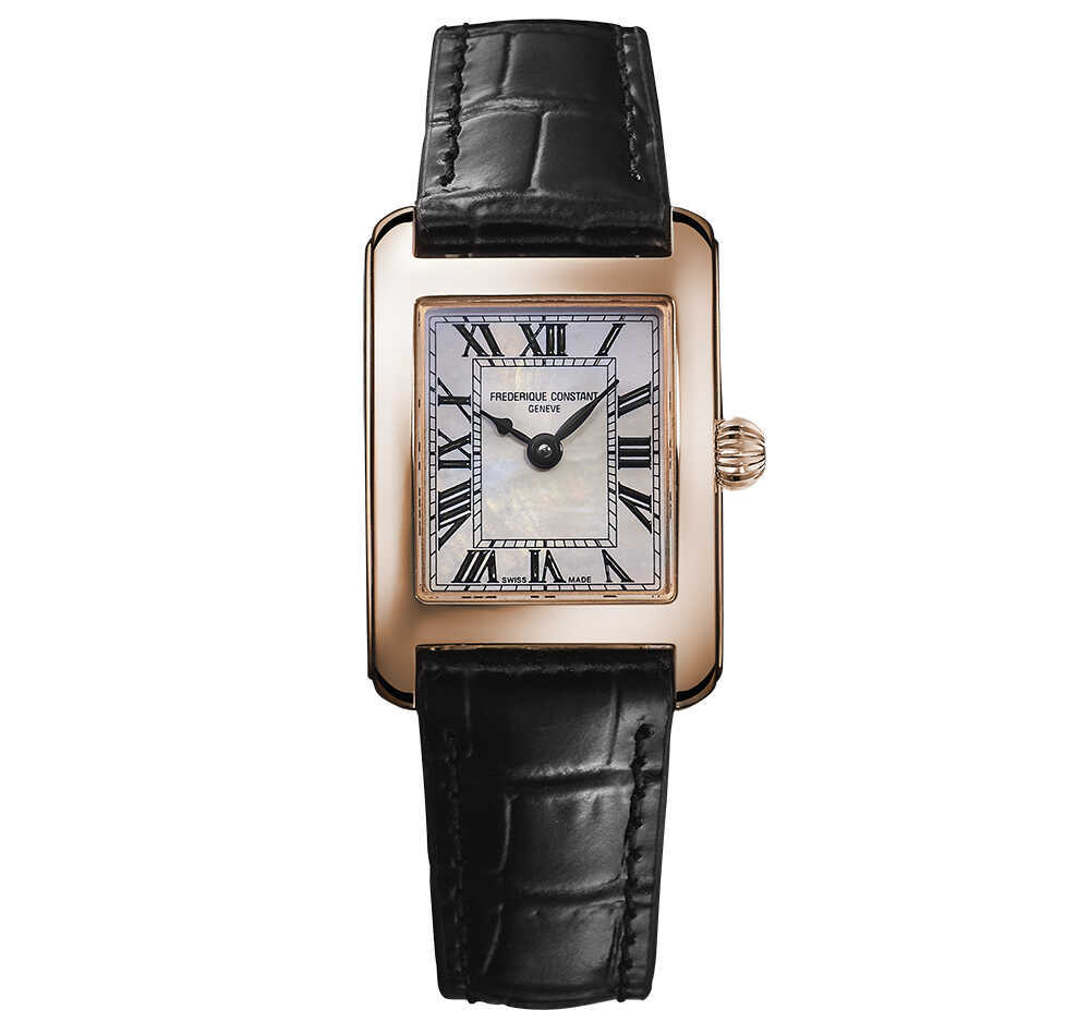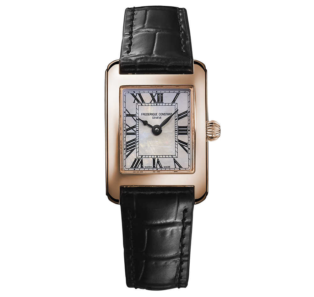 真飛聖 着用時計:クラシック カレ レディース。ケースサイズ23×21㎜、クォーツ、SSケース(ローズゴールドプレート)、牛革ストラップ、3気圧防水、日本限定モデル。20万3500円(フレデリック・コンスタント/フレデリッ ク・コンスタント相談室)