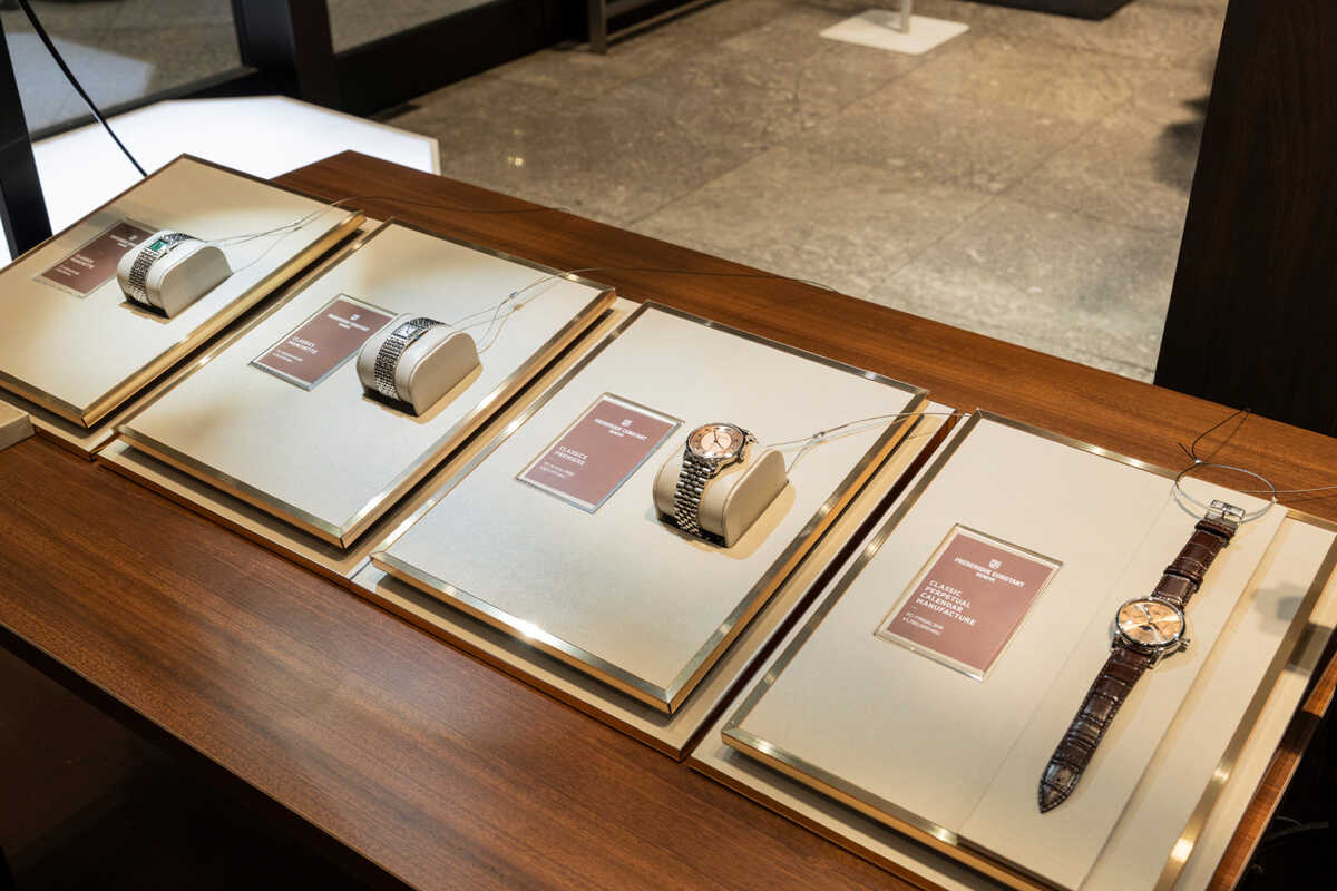 12月10日から16日までの期間、阪急メンズ東京1階では、ホリデーシーズンの高揚感をいっそう引き立てる〈フレデリック・コンスタント〉のタイムピースを、阪急メンズ東京ならではの洗練されたスタイリングとともに展示。人気を誇る“クラシック カレ”コレクションをはじめ、マザー・オブ・パールの文字盤を纏った日本限定モデルまでが揃い、通りがかる人々の視線を集めていた。