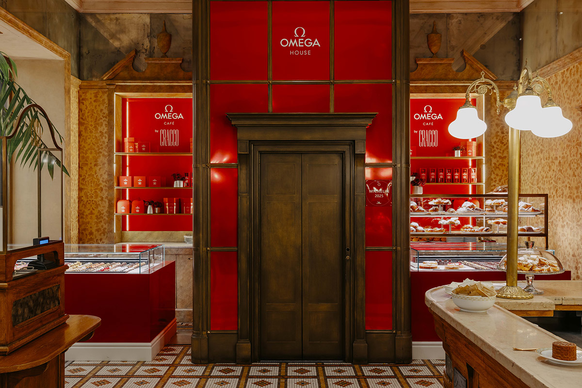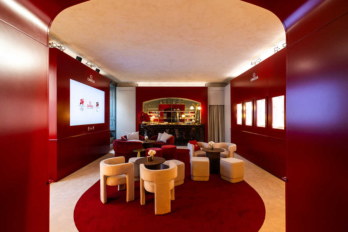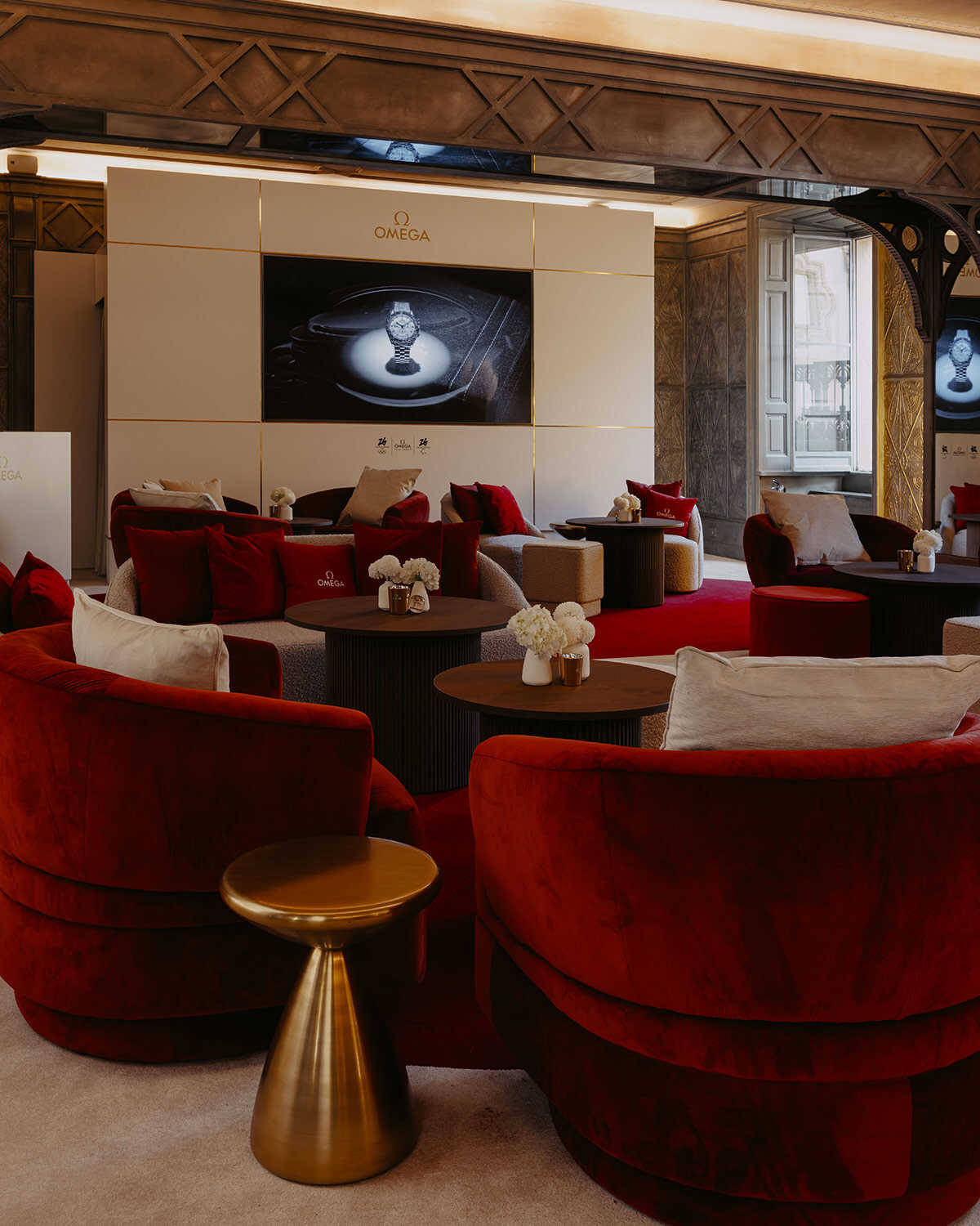 今冬のオメガ ハウスは、ミラノの中心部、 歴史あるアーケードのガレリア・ヴィットーリオ・エマヌエーレ2世内に位置するレストラン〈クラッコ〉内に設けられた。オーナーはオメガ フレンドでもある、世界的に 有名なシェフ、カルロ・クラッコ。1階のカフェは、オメガのブランディングを施した"オメガ カフェ バイ クラッコ"へと姿を変え、カフェ クラッコ チームによる卓越したサービスを受けられる。2階と3階は、冬季オリンピック期間中の特別なリトリート空間となる。日中は、ゲストがラウンジでくつろぎながら食事を楽しんだり、スクリーンで競技観戦したりするなど、思い思いの時間を過ごすことができる。そして夜になると、様々なテーマを用いたイベント会場へと一変。ブランドとゆかりのあるセレブリティたちを迎え、オメガならではのスタイルで華やかにイベントが行われる予定。
