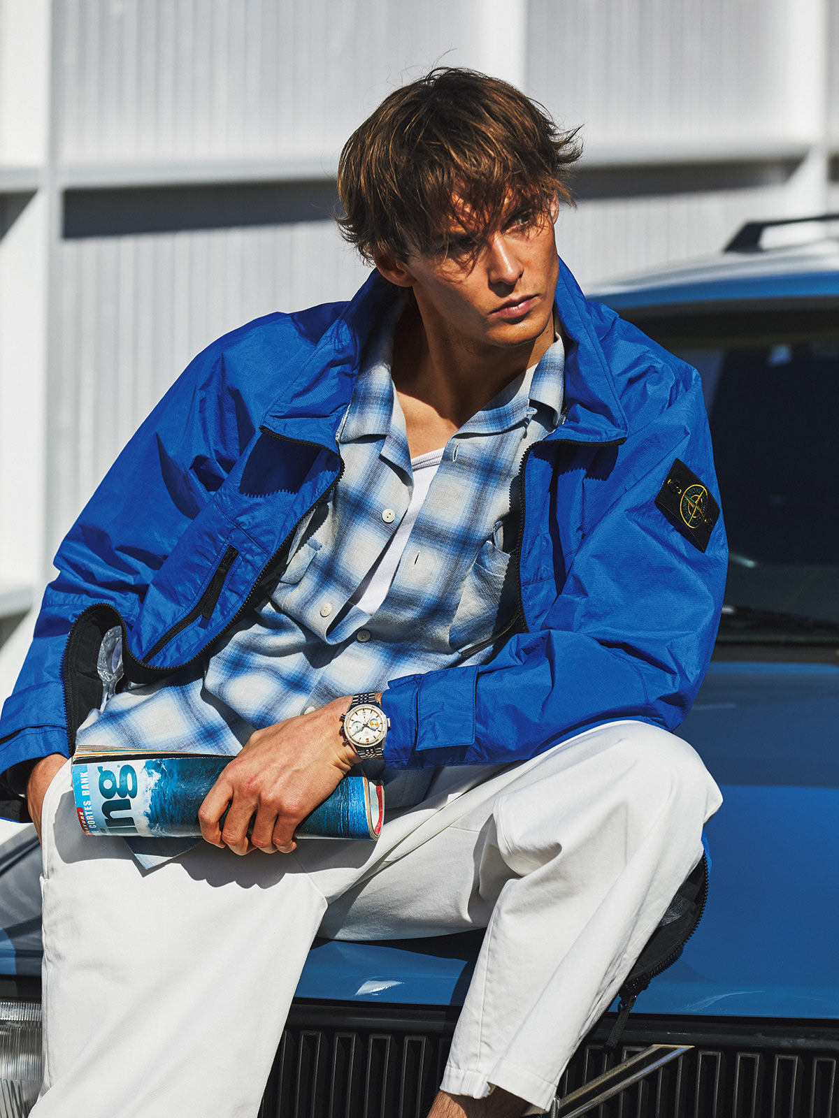 大人になってよかったことは、昔の憧れを実現できること。学生時代に読んだサーフマガジンに載っていた憧れのサーフスポットに友人たちとトリップできるなんて、まさに夢が叶った瞬間だ。大人のサーファーなのだから、お洒落だって上質を意識してナイロンブルゾンもハイスペック。さらに時計も海系なら完璧。趣味もファッションも時計を楽しめる大人になった実感で気分も上がる。
