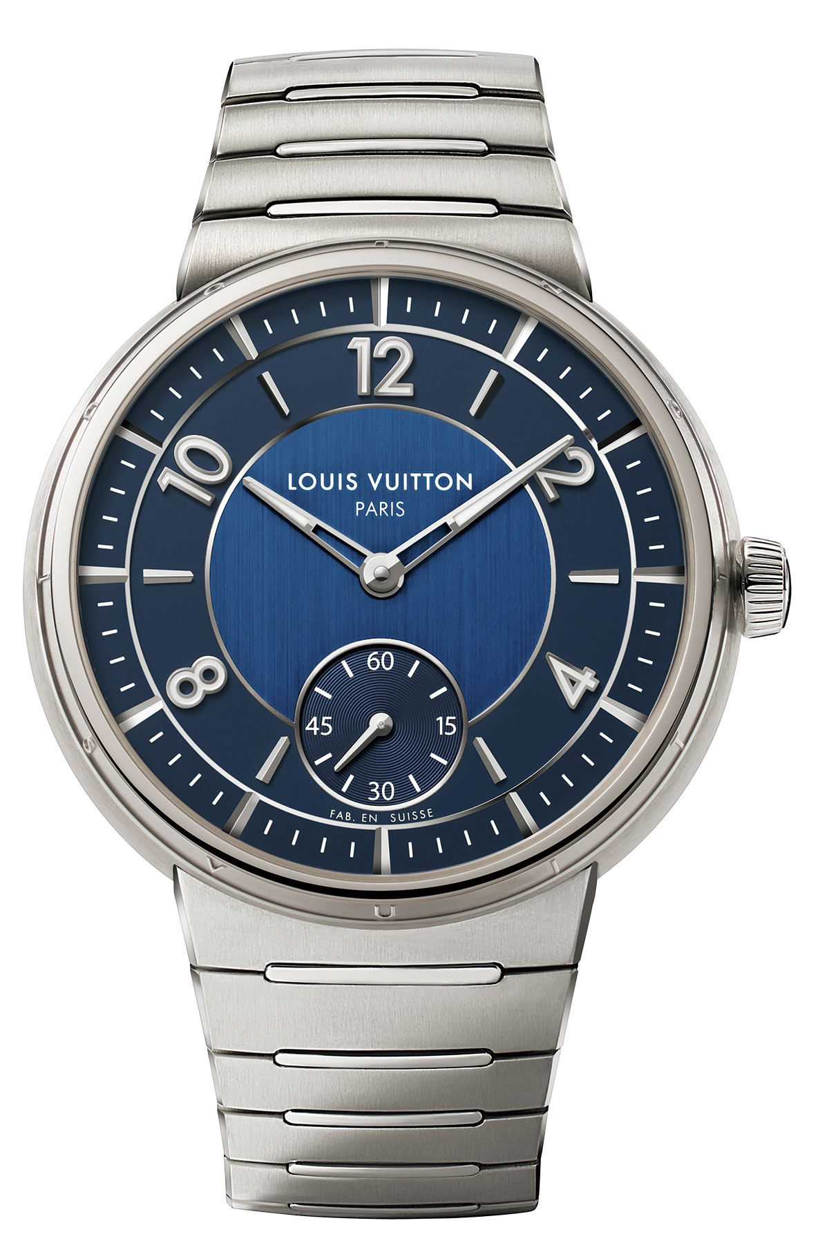 〈ルイ・ヴィトン〉のアイコンウォッチ〝タンブール〞が、メタルブレスレットと一体化させた薄型ケースでよりエレガントに。伝統的なスモールセコンドの採用で、審美性も高めた。ケース径40㎜、自動巻き、SSケース&ブレス、50 m防水。317万9000円(ルイ・ヴィトン/ルイ・ヴィトン クライアントサービス)