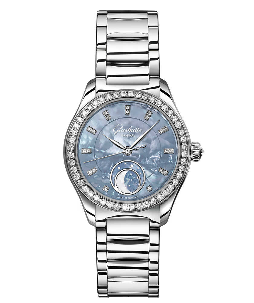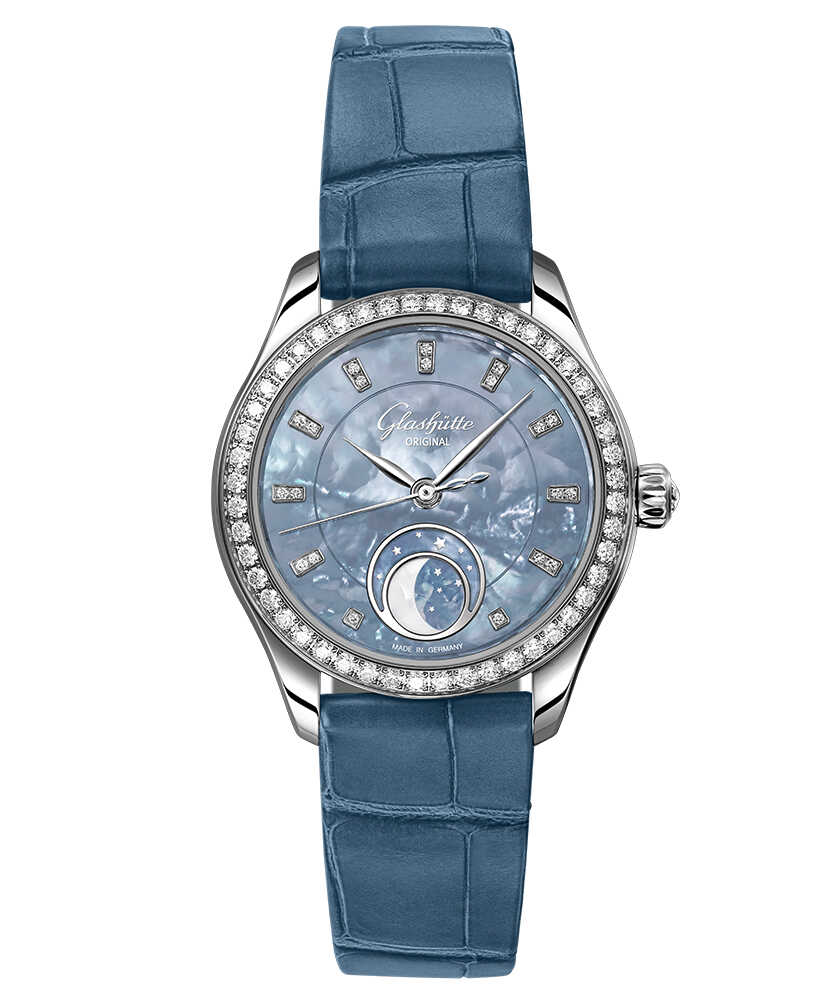 さらに、48個のブリリアントカットダイヤモンドや、ステンレススティールが上品な輝きを添え、ムーンフェイズや星の装飾が幻想的な雰囲気をプラス。ムーンウィンドウと重なる部分からは、マザー・オブ・パール本来の自然な白が浮かび上がり、月の幻想的な姿が。また、内部には高精度な自動巻きムーブメントを搭載し、機能面でも確かな実力を発揮。日常においても、さりげなく特別感を添えてくれるタイムピースだ。こちらは、〈グラスヒュッテ・オリジナル〉のすべてのブティック、世界各国の正規販売店で発売中。プレゼントにもふさわしい1本是非、をチェックしてみて。