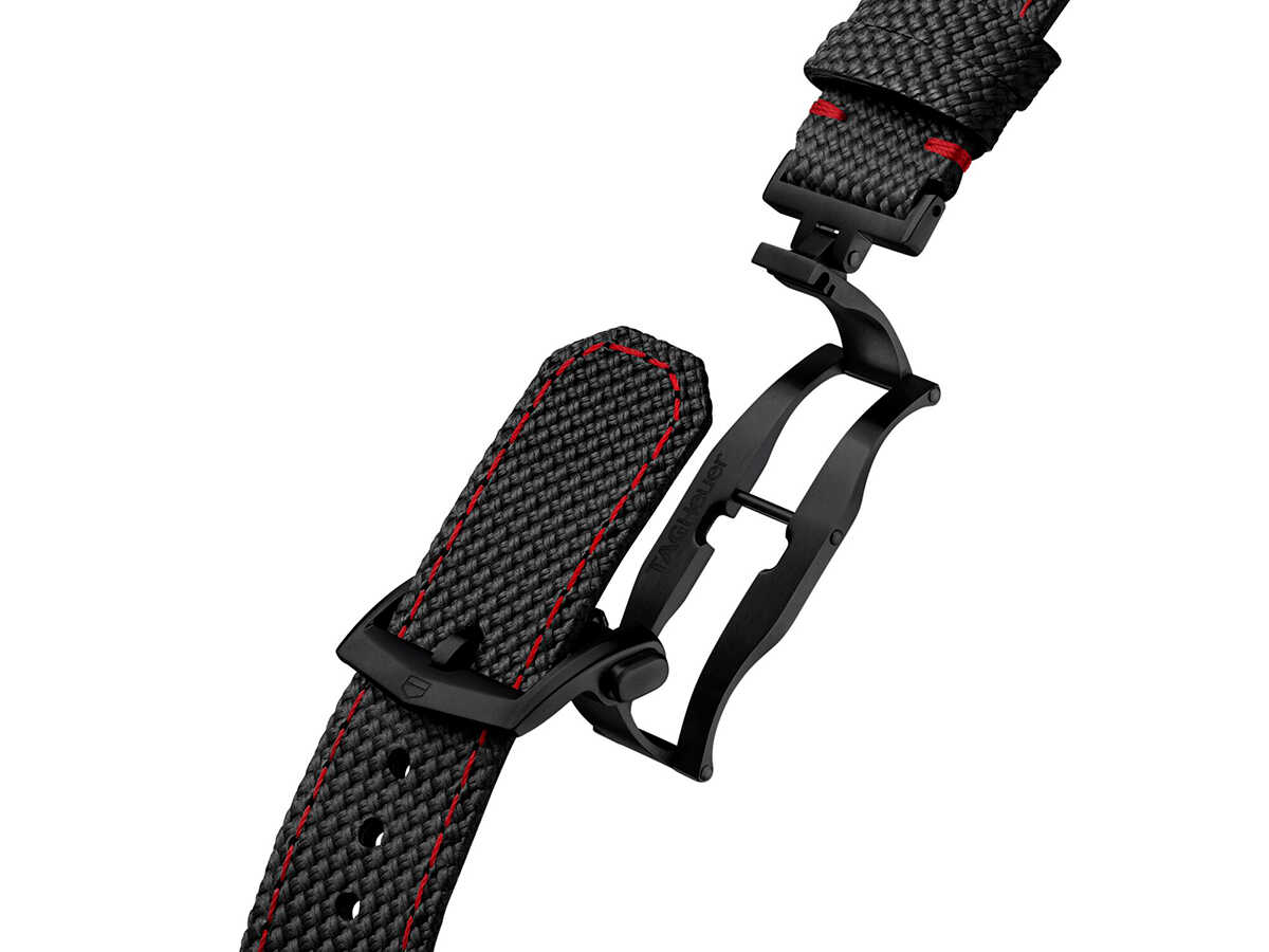 ケースサイズ39mm、自動巻き、チタンケース、ブラックカーフストラップ、100m防水。188万6500円(タグ・ホイヤー/LVMHウォッチ・ジュエリー ジャパン タグ・ホイヤー)