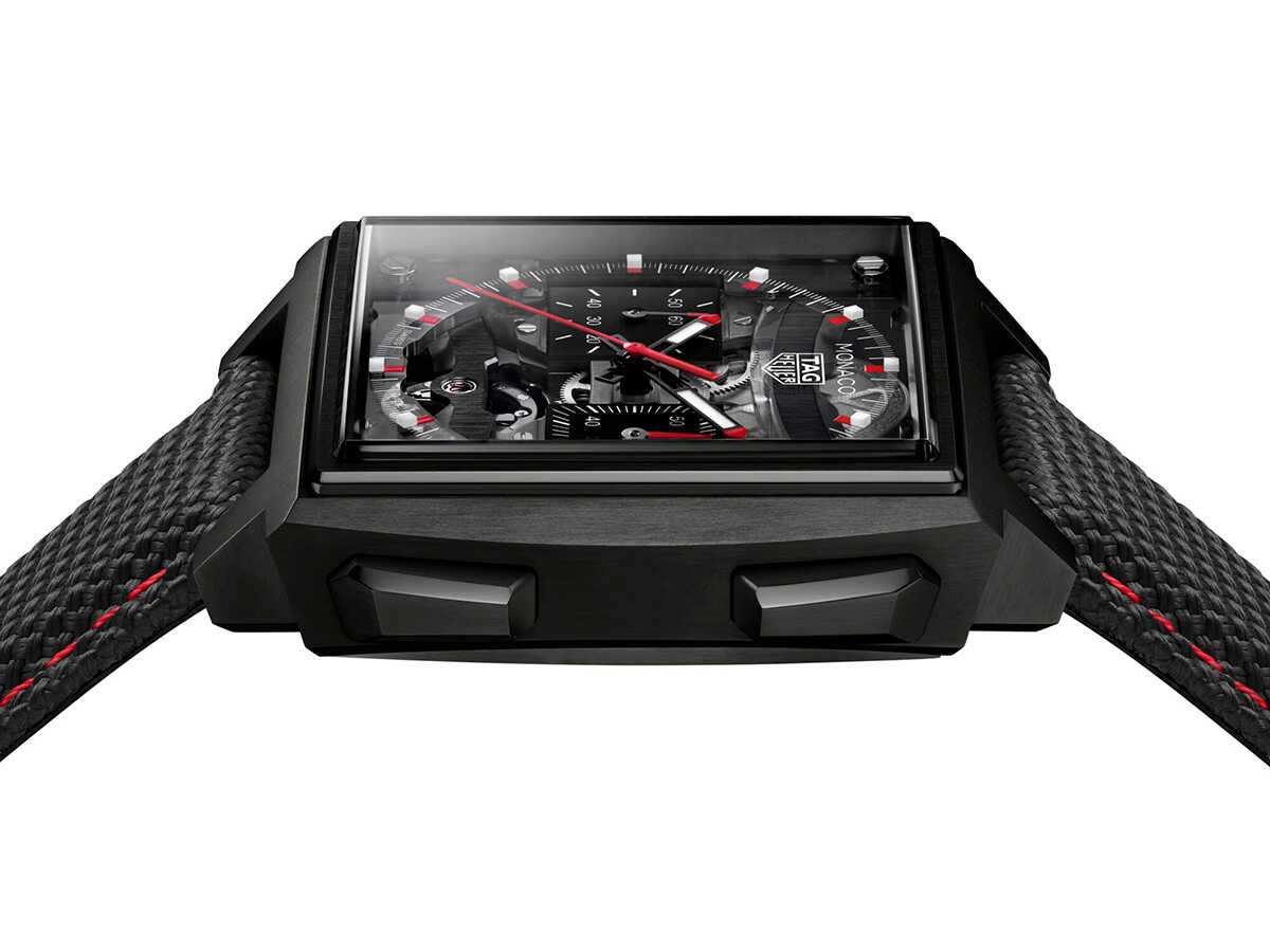 ケースサイズ40mm、自動巻き、チタンケース、ブラックラバーストラップ、100m防水。493万9000円(タグ・ホイヤー/LVMHウォッチ・ジュエリー ジャパン タグ・ホイヤー)