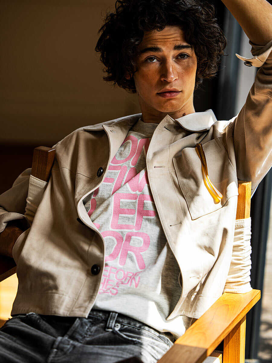 しなやかで耐久性のあるゴートスウェードを使用した〈アルマ〉のレザージャケット。ベーシックなシルエットで着まわしやすく、合わせるアイテムを選ばすに使える1枚。シンプルながら高級感があり、大人の装いにすんなりと馴染んでくれる。