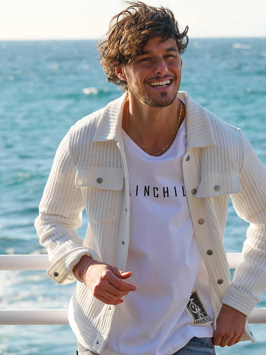 立体感ある発泡プリントで描いた都会的な書体のロゴを、爽やかに印象づけられる新作。米綿の天竺を採用したボディは、ドライタッチの爽やかな着心地に仕上がっている。左裾にはスカルモチーフのスレーキワッペンを施し、横顔で違い出しが叶うデザインに。
