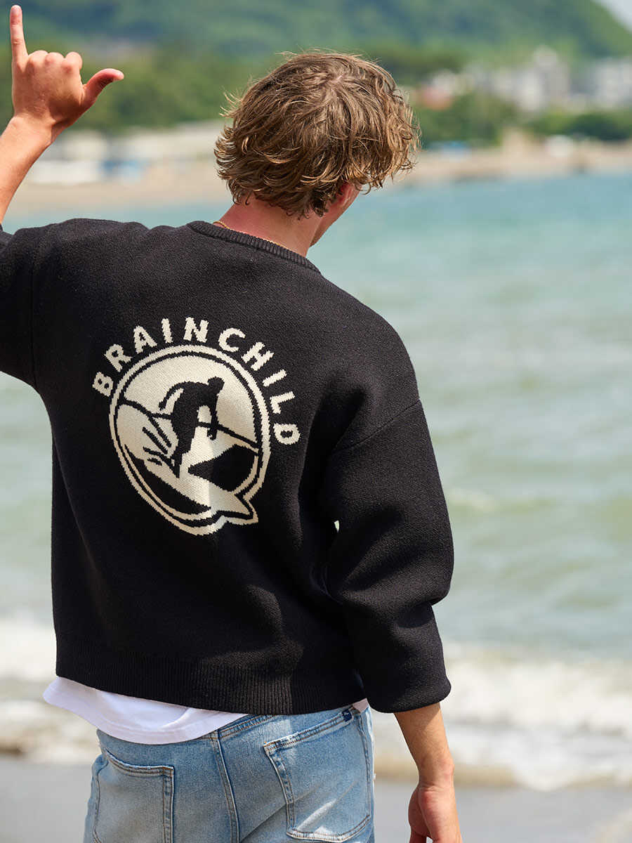BRAINCHILD 別注限定 サーフモチーフ柄 バックプリントニット