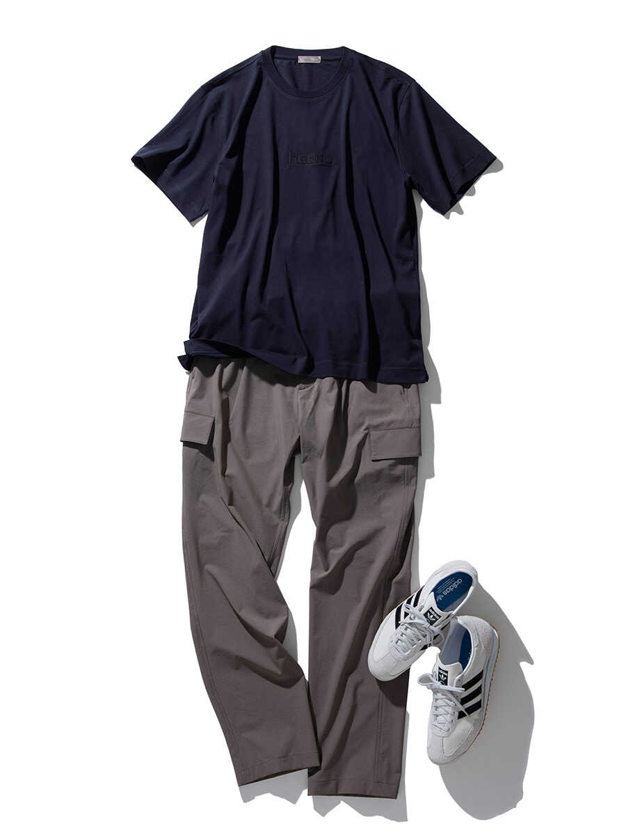 半袖でも秋の香りは漂わせられる! それがネイビーT×ベージュ系ボトムだ