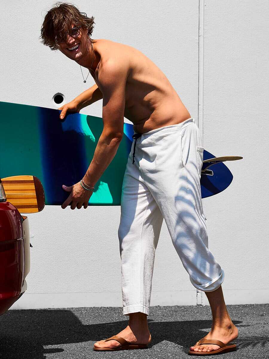 今まではレザーだったりスウェードだったりという素材で、高級感はあるけど、実際に海で履くには使う場面が制限されることもあった従来の〈アイランドスリッパ〉。それがEVA素材をまとい、新たな進化した姿となって登場した。これなら愛犬と一緒に波打ち際を歩くことだってできるし、サーファーが波乗りのお供に使うにもぴったり。しかも見た目はこのブランドらしさ満点で、パッと見はEVA素材とはわからないくらいの質感のよさ。なので、街で履くにも問題なし。これから猛暑へと向かうシーズンの足元はこのニューモデルがいいのでは? カラバリも豊富なので、どれを選ぶか迷うのも楽しい。