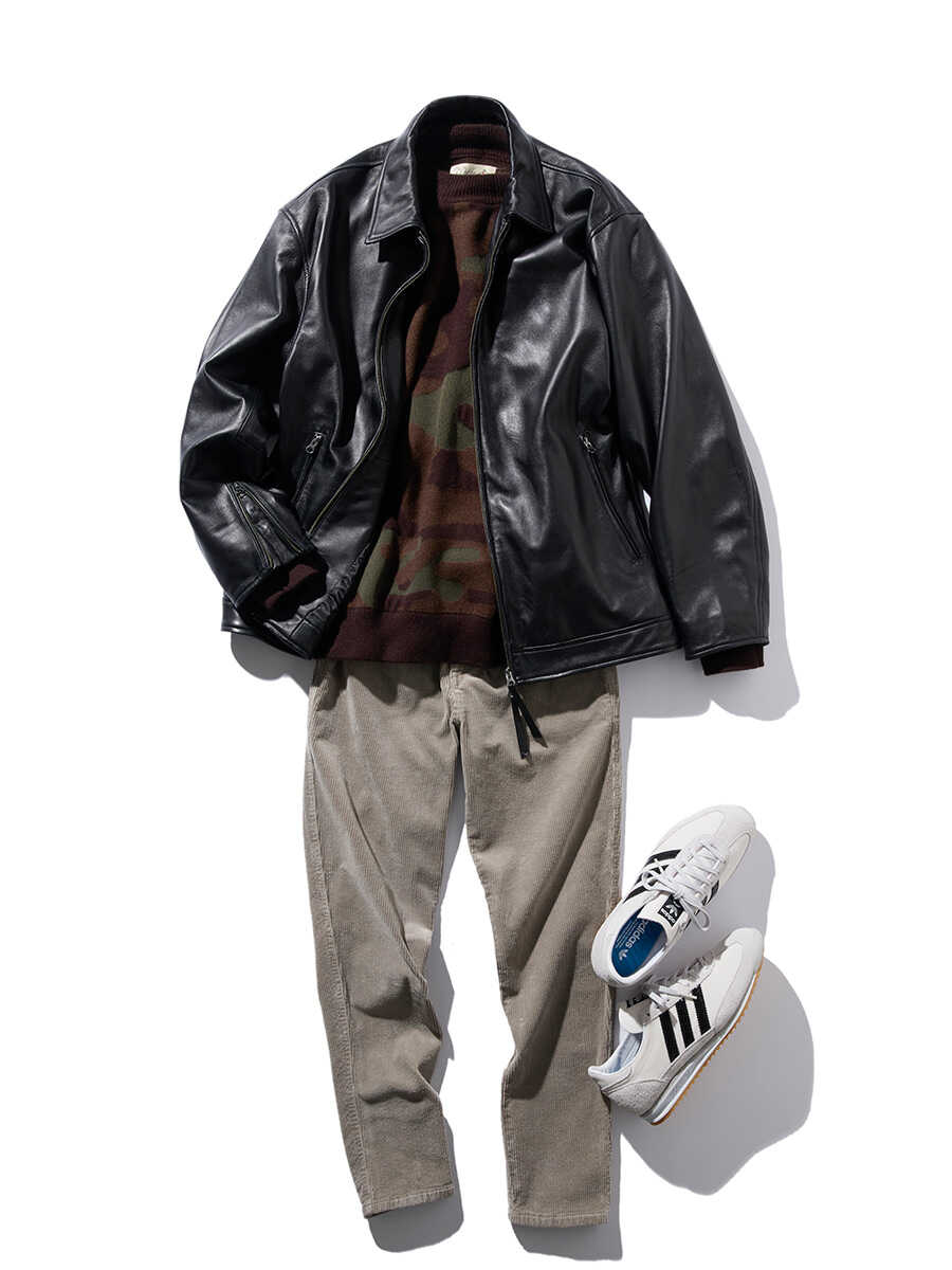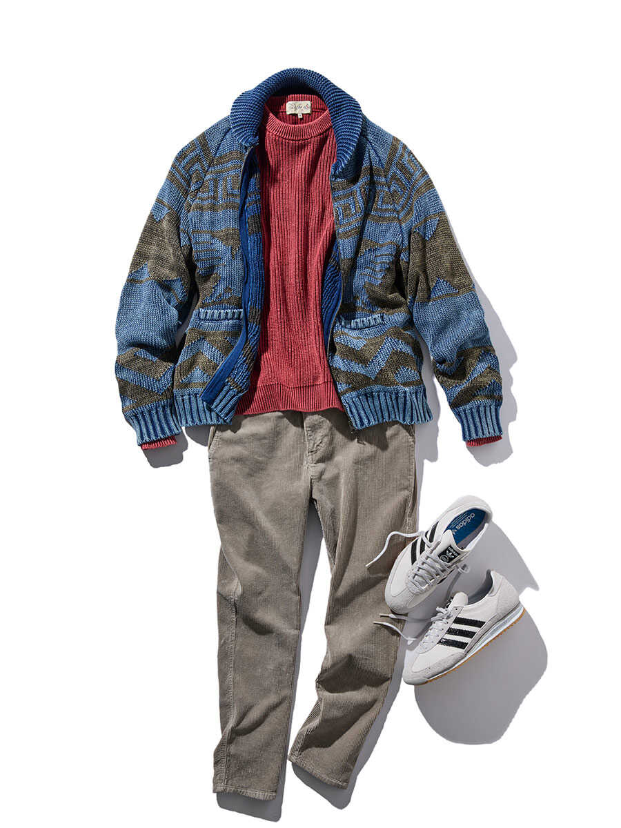 中肉のコーデュロイ素材を使用した〈ザ・ダファー・オブ・セントジョージ〉のスキニーパンツ。スラックスを意識したこだわりのディテールで、美しいスキニーテーパードシルエットを実現。地球環境に配慮した「エコフレンドリーダイ」による製品染め加工を施しているのも特徴だ。