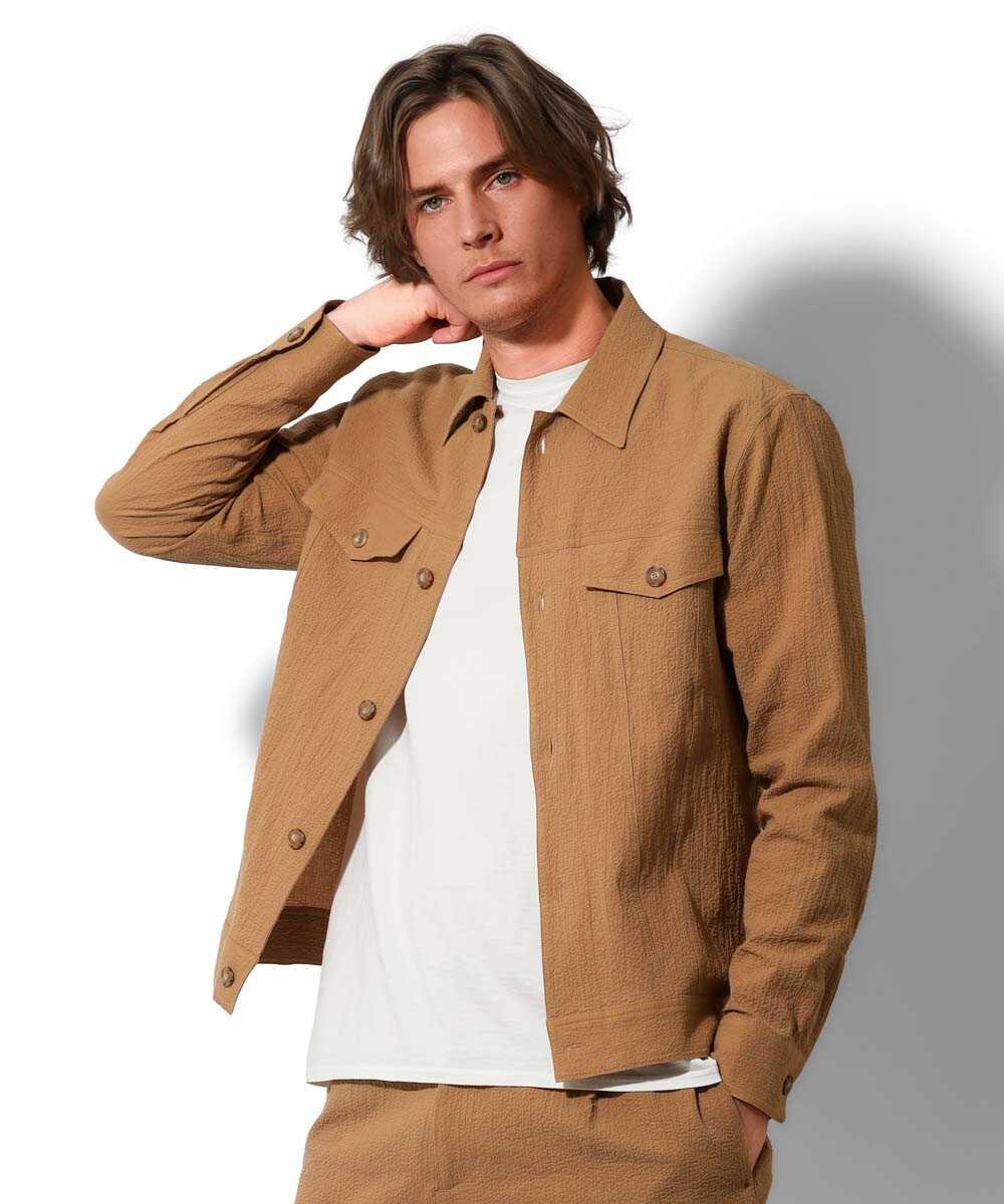 セットアップ対応のショーツは、ドローコードとウエストゴムを採用した楽ちん仕様。腰まわりに加え、裾まわりもゆったりさせた作りは風通しもよく、春はもとより、暑くなる夏も活躍が期待できる。シアサッカーがシワになりにくい素材でもあるのも嬉しいポイント。