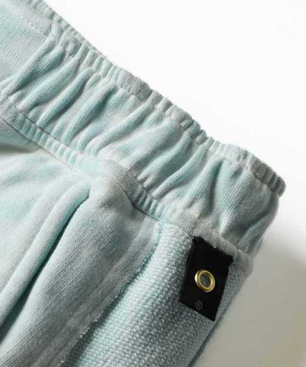 海辺の陽射しもよく映えるフェードカラー。セットアップ使いできるパーカと共布のジョガーパンツ。内股がリブなので、動きやさ抜群。アウトラインを生地裏に切り替え、視覚的アクセント。内股をリブ仕様にすることで可動域を広げるとともに、裾回りがダボつかず、すっきりとした印象を。ヒモ部分の留め具までゴールドで統一した『Safari Lounge』ならではの別注ポイント。