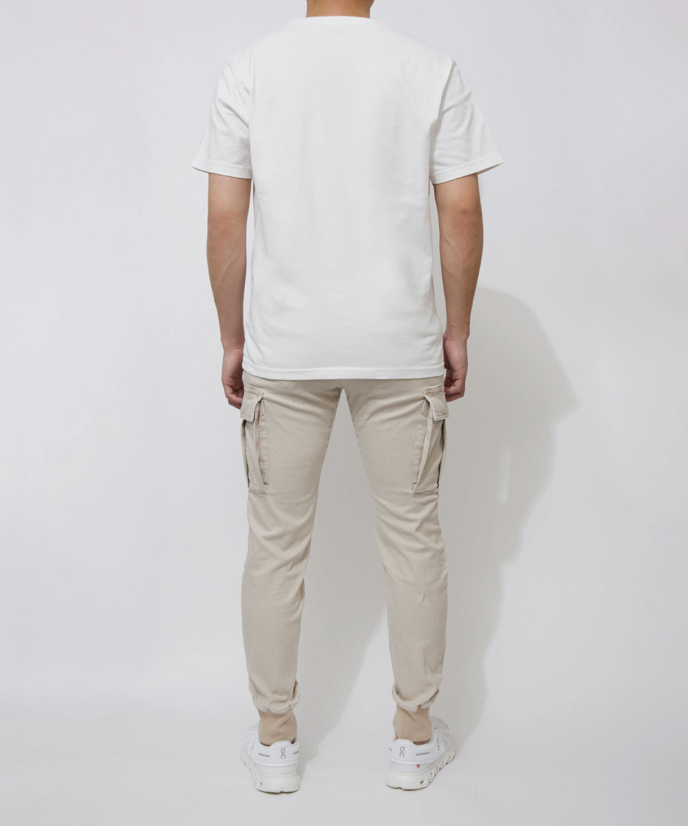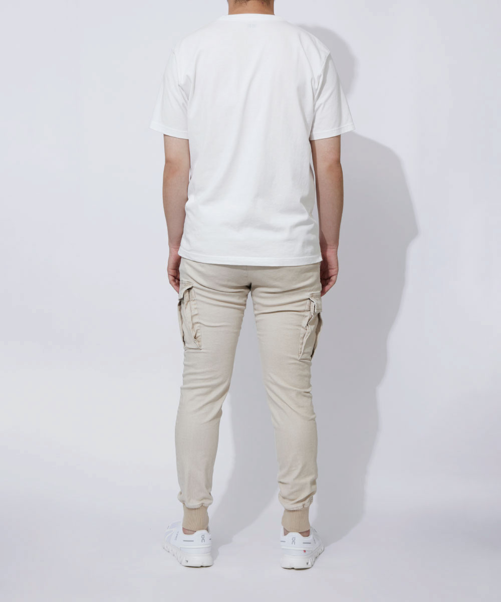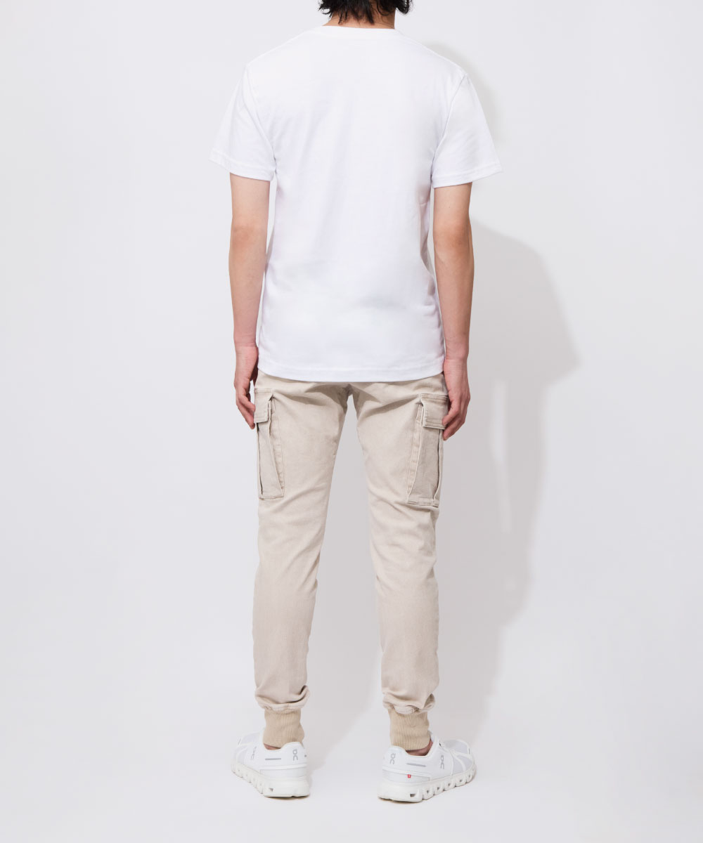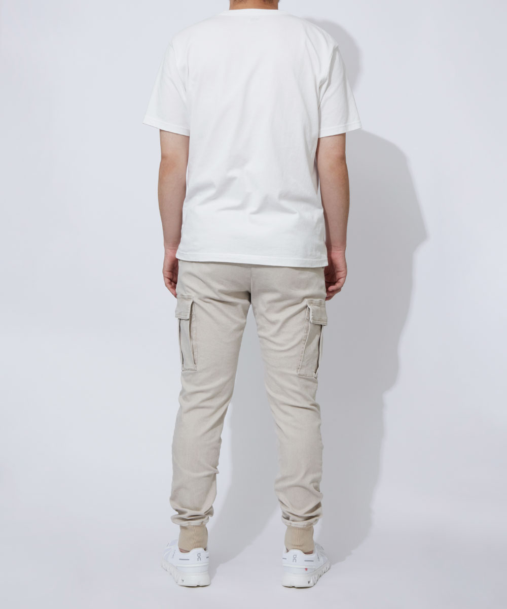 脚の形に沿いつつも、ピタピタにならない、ちょうどよい塩梅のシルエット。野暮ったいカーゴパンツの印象をこの美シルエットで一気に払拭できる!