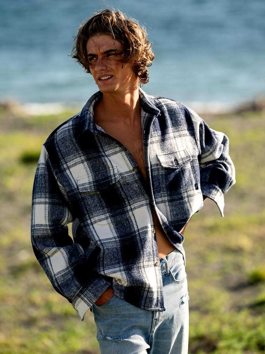 大ぶりのフラップポケットがあることで、シャツコーデはもちろん、軽アウターっぽくも着こなせるチェックシャツ。起毛感のある中厚手の生地はしっかりとした張りがあるので、1枚でバサッと着てもサマになる。表面には起毛感があり、秋の海でも暖かく過ごせそう。